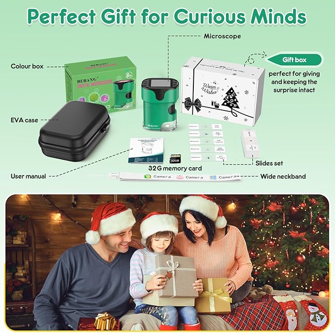 • Gift Box: A gift box has been added to the outside of the product's colour box. Not only protect the microscope and slides better, but also keep the surprise.