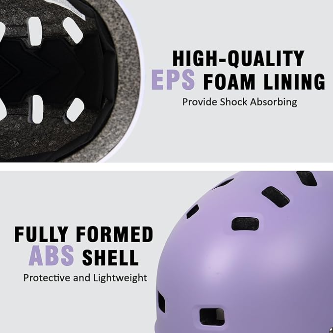 • The kids bicycle helmet is made of rugged ABS shell and shock-absorbing EPS foam to provide comprehensive protection.
