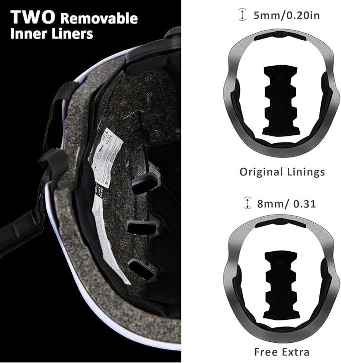 • The child helmet design with 12 air vents keep user cool and comfortable. Equipped with 2 set of removable liners (5mm, 8mm), easy to wash sweat away.