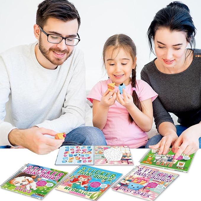• Develop Skills: Take the fun and learning experience to new heights with our paint by sticker books. Boost hand-eye coordination, color and number recognition, and stimulate cognitive development. Ideal for gifting and party favors, these silly snack, dog , cat, mermaid sticker paint books bring joy and foster imagination. Unleash the combined power of play and education with our exceptional sticker paint books.