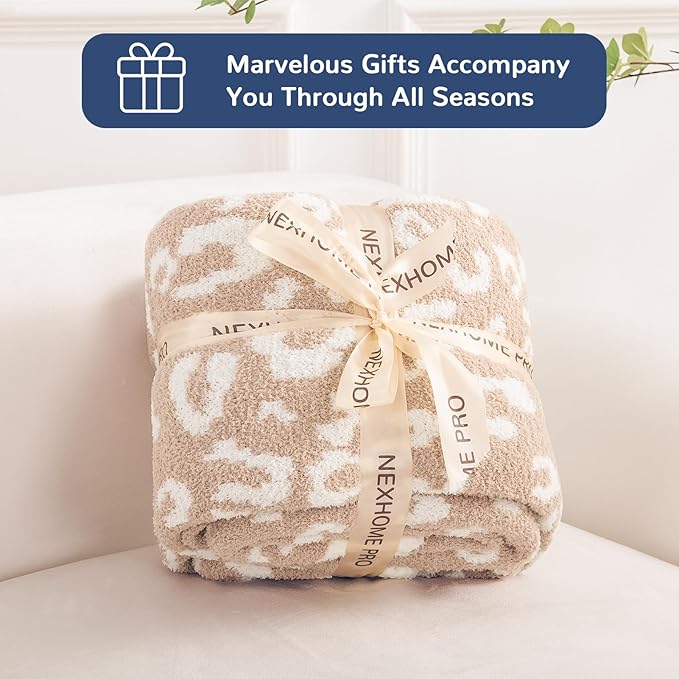 NEXHOME PRO Leopard Soft Blanket, Fuzzy Throw Blanket for Couch Bed Sofa Picnic, Knit Blankets for Women Gifts Beige 50 x 60 inches
