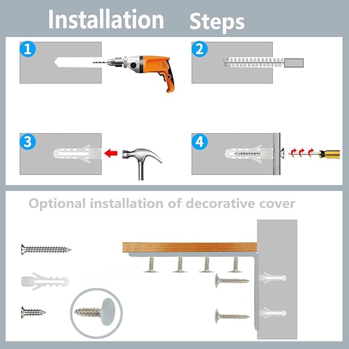 • Package Includes(furniture anchors for baby proofing): Furniture anchors Use the hardware components included in the package, and baby furniture anchor Package Includes:All parts made of high quality steel, includes4 pack Stainless steel bracket, 8 pcs Long wall screws, and 16 pcs Wall anchors 8pack expansion nails plugs y to install with a screwdriver or drill driver.