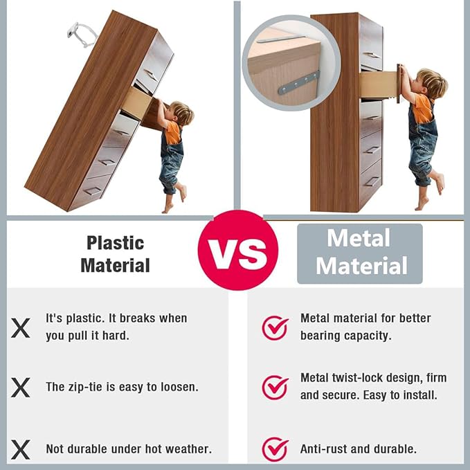 • Easy To Install: Furniture anchor Use the hardware components included in the package, and easy to install with a screwdriver or drill driver. anti tip furniture anchors are detachable if you need to clean behind furniture or remove furniture (bookshelf、dresser etc)