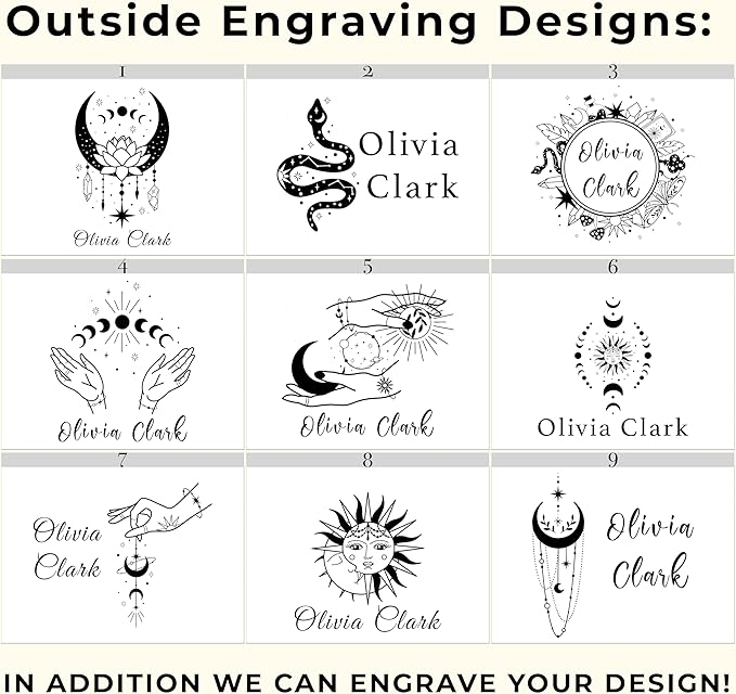 • Customizable: Our crystal box for stones can be engraved with designs we offer, along with your name, date, or a short phrase. The font will match what’s shown in the photos unless you indicate other preferences. Additionally, the inside lid's side can be engraved with your own text in different fonts we offer.
