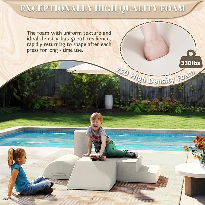 jela Foam Blocks 6Pcs Soft Play Equipment Waterproof Fabric, UV Resistant Toddler Climbing Toys Indoor& Outdoor Soft Play Climbing for Toddlers, Lightweight Climbing Blocks for Babies, Kids (Sand)