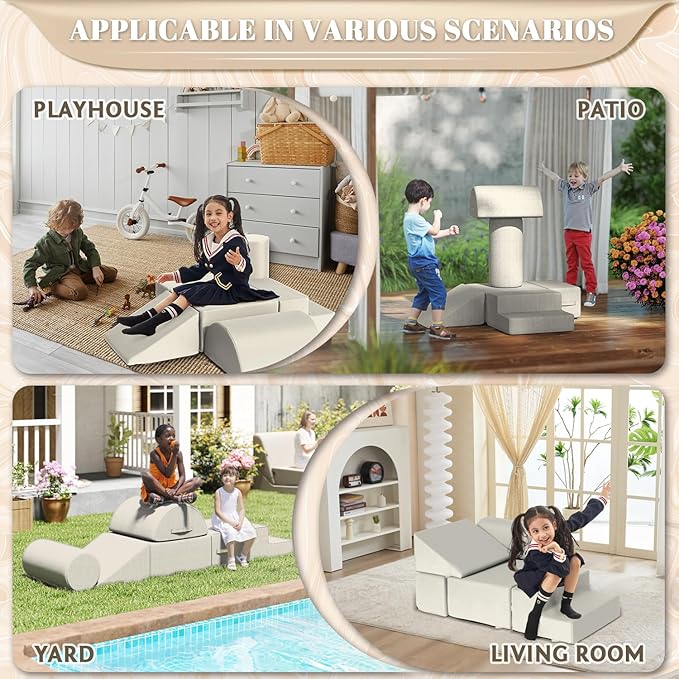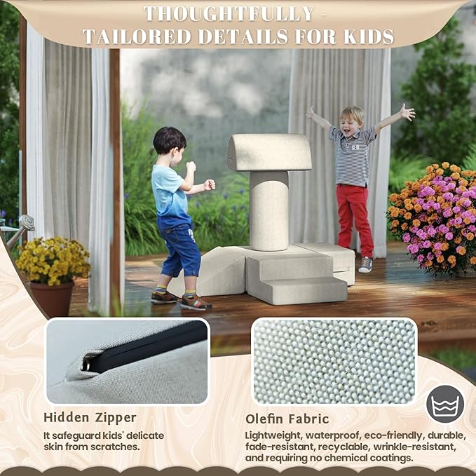 • Waterproof and Stain-resistant Fabric:The jela climbing blocks with upgraded Olefin waterproof fabric have dual protection against moisture and UV rays. This soft play set can be placed freely in children's rooms, on terraces, or in courtyards, allowing children to play without restrictions. In the face of situations like juice spills or mud stains, they can be easily wiped clean, continuously creating a hygienic play environment for children.