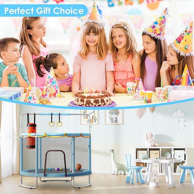 • 【Perfect Gift Choice】With vibrant colors, our trampoline will captivate kids and keep them entertained for hours. It offers a safe, exciting space for jumping and playing, away from furniture, giving you peace of mind. Ideal for birthdays, holidays, or any occasion, this trampoline is the ultimate gift for energetic children. It encourages physical activity and creativity, making it a perfect addition to any home or play area.