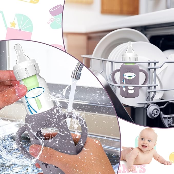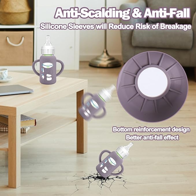 • Unique Designed for Baby Bottles - The silicone sleeves for Dr. Brown's Baby Bottles can against drop down,bumps and scratches. These are a must essential product for using glass baby bottles. They provide a more sturdy protection for glass baby bottle from breaking if dropped, which also unique handle design shape make it easier to grip and hold