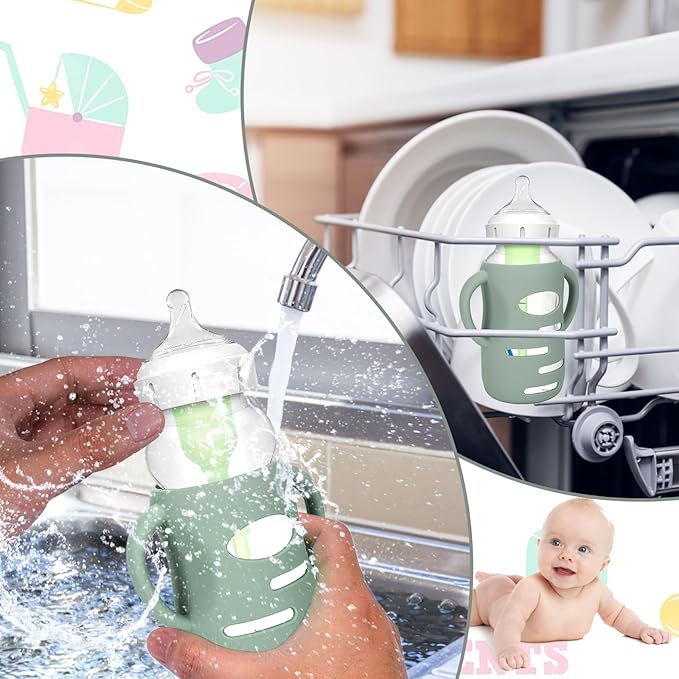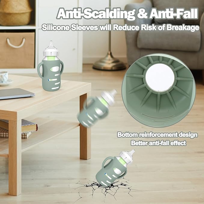 • Unique Designed for Baby Bottles - The silicone sleeves for Dr. Brown's Baby Bottles can against drop down,bumps and scratches. These are a must essential product for using glass baby bottles. They provide a more sturdy protection for glass baby bottle from breaking if dropped, which also unique handle design shape make it easier to grip and hold
