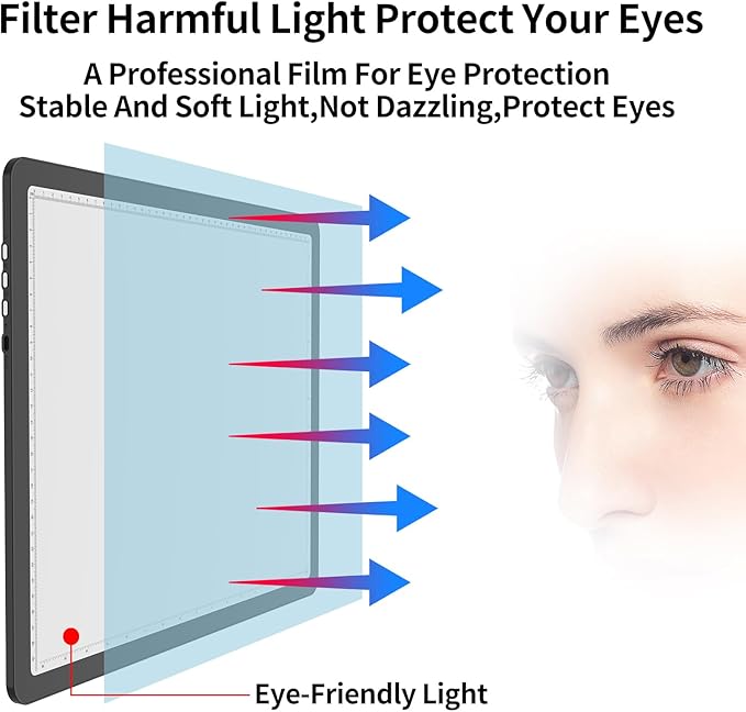 • 【3 Light Color Modes and 6 Levels/Stepless Dimming】This lightpad supports 3 colors of white light, natural light and warm light. Each lighting mode has 6 brightness dimming options. By shortly press the physical button to choose 6 levels brightness OR by long press the physical button to stepless adjust brightness. The Drawing Lightbox MAX brightness reach to 5400 Lux in the surface, which is great tool for cricut weeding vinyl. The light is even, non-glaring, no more eye fatigue when painting.