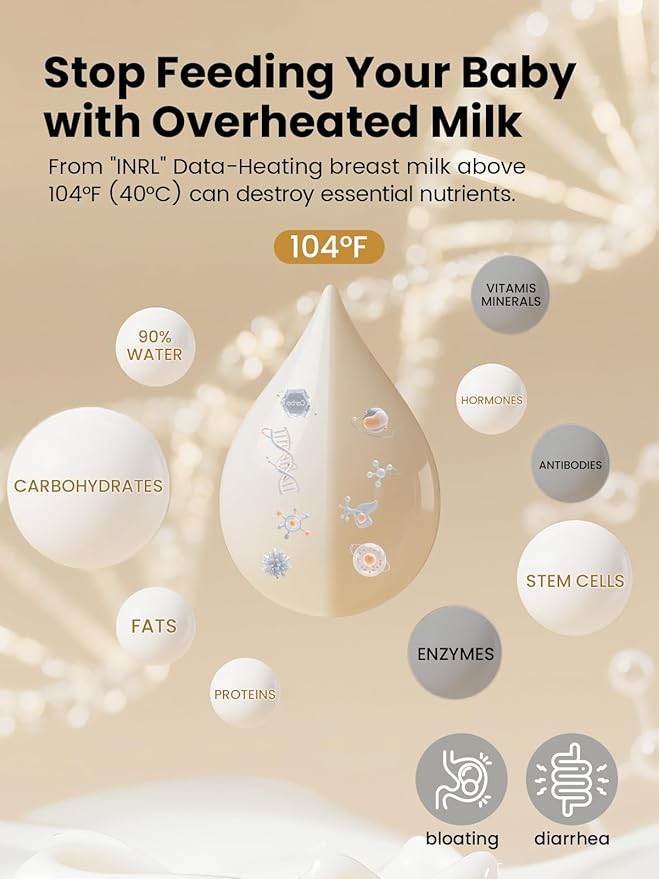 • ๐—™๐—ฎ๐˜€๐˜ ๐—ช๐—ฎ๐—ฟ๐—บ๐—ถ๐—ป๐—ด & ๐—ก๐˜‚๐˜๐—ฟ๐—ถ๐—ฒ๐—ป๐˜ ๐—ฃ๐—ฟ๐—ฒ๐˜€๐—ฒ๐—ฟ๐˜ƒ๐—ฎ๐˜๐—ถ๐—ผ๐—ป: Heats 4oz/120ml milk to the ideal temperature in 2-5 minutes, preserving nutrients through gentle water bath technology that avoids overheating, supporting your baby's digestion and growth. Features a 24-hour keep warm function, perfect for nighttime feedings and immediate baby comfort.