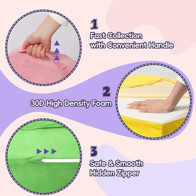 • Safe and Guaranteed: The kids climbing blocks are CPSIA & CPC certified, non-toxic, and tasteless fabric with ASTM approved. Each block is designed with hidden zippers to prevent scratches on delicate skin, and the structure is soft with no sharp edges, reducing the risk of bumps and bruises.