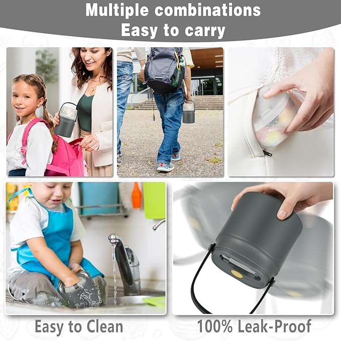 • 100% Leak proof - Our soup thermo uses vacuum sealing technology, rubber sealing for snack container, 100% leak proof sealing, which can be safely placed in a backpack or held in your hand. Very suitable for school, work, and travel.