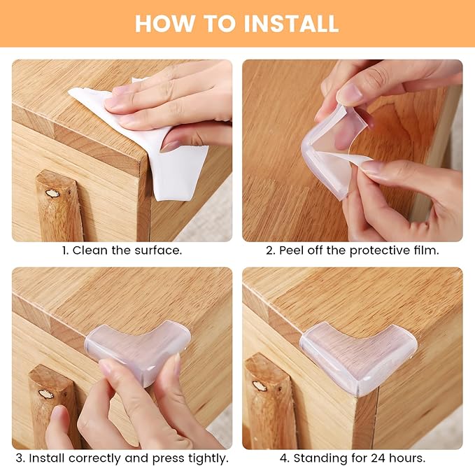 • 【No Harm to Furniture】 Don't worry about the damage to furniture, our corner guards will protect indoor tables, cabinets, shelf, dresser, cupboard, kitchen counter, door, chairs, fireplace, and outdoor corners. Also, the upgraded gel-adhesive will help you easier to clean when removed ( for quick and better clean, please use a hot towel or hair-dryer to preprocess firstly)