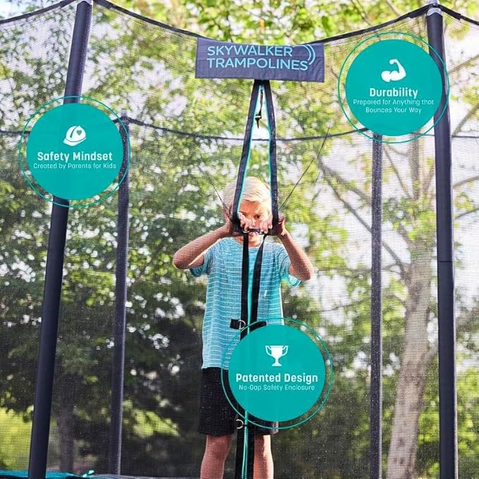 • PATENTED DESIGN: Our patented no-gap enclosure system goes beyond safety basics by eliminating pinch points and openings, offering a safer and secure jumping experience for you and your family. This innovative design sets us apart, ensuring that every bounce is truly worry-free.