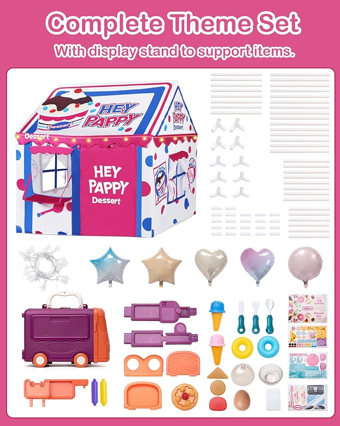 Kids Play Tent, Toddler Tent for Kid Indoor & Outdoor, 48.5"x39.4"x48.5" Playhouse Tent Dessert Theme with Complete Toys Set, 3 Window, Lights and 5 Balloons