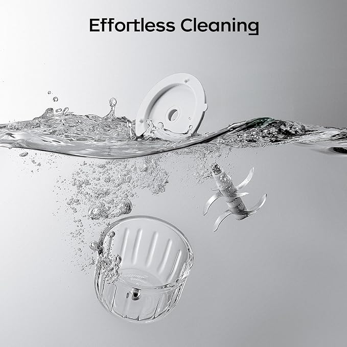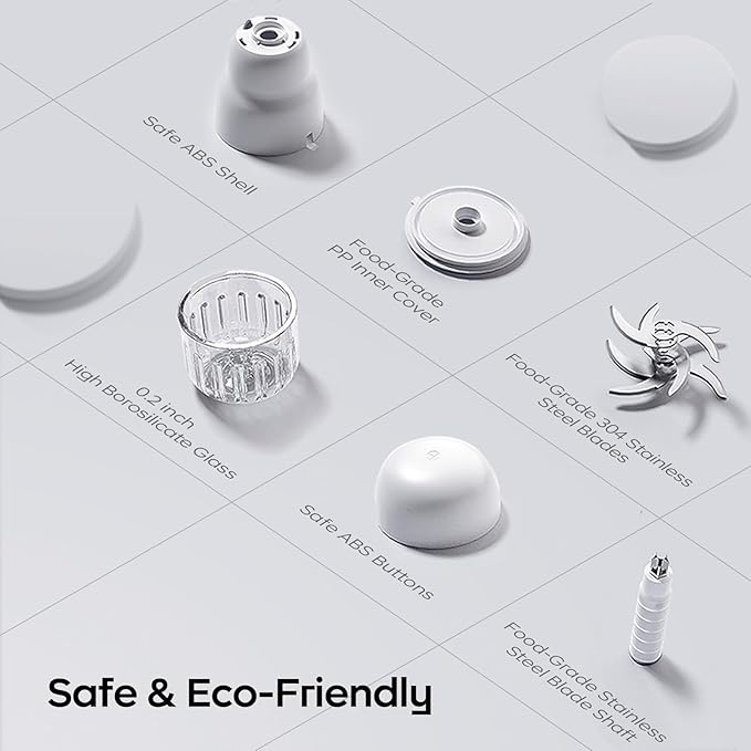 • 【Premium Safety & Design】Crafted with food-grade materials for worry-free use: a durable glass bowl, stainless steel blades, and BPA-free PP plastic. The built-in safety lock and automatic shut-off feature (activates when tilted or detached) ensure maximum safety. The blade stays securely inside the cup during removal, preventing accidents. Its sleek, modern design adds a touch of elegance to your kitchen.