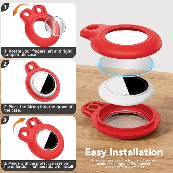 • Easy Installation: No complicated operation is required, and you can fix AirTags in the Holder in a few easy steps;[Tips]: The specific installation steps can be seen in the picture; The protective cover of the Apple Airtags keychain will not affect the touch screen and shield the signal; Whether it is finding lost items or remote tracking, it can be easily achieved
