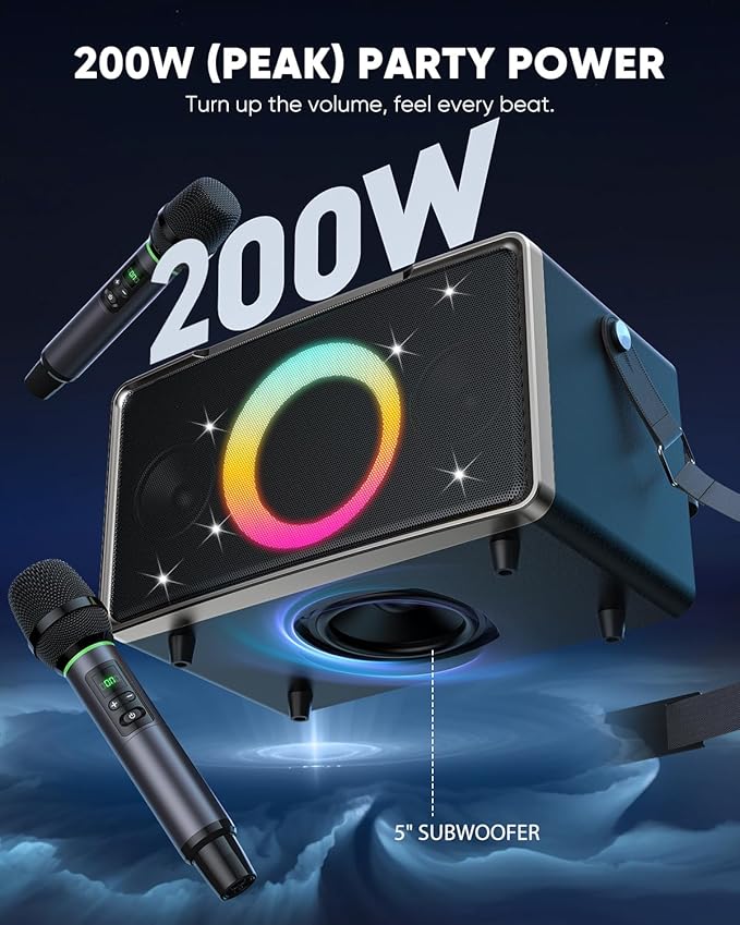 • WIRELESS MIC: Bluetooth speaker with microphone supporting 3 modes (KTV/Reverb/Speech). Bring it to your living room for family party sessions, or take it outdoors for park barbecues and picnics—turn any space into your personal stage.