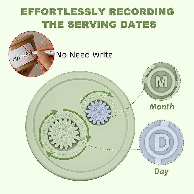 • 💫 Track Freshness with Built-In Date Markers: Never guess “Is this still good?” again! Our baby food containers' lids feature M (month) and D (day) markers to track prep dates. Baby food jars ideal for breastmilk storage, baby purees, or meal prep—minimize waste and maximize freshness!