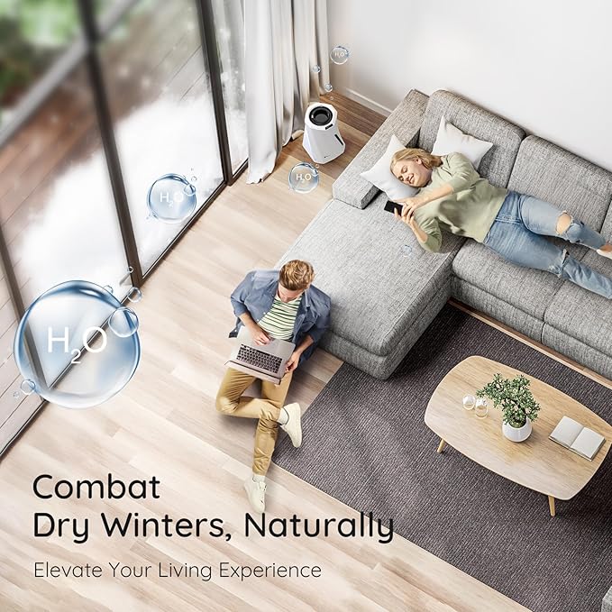 • No Visible Mist Humidifier: Unlike traditional cool mist humidifiers for bedroom that produce visible mist, our H5 model air humidifiers releases only water vapor. This direct vapor output is advantageous for maintaining more consistent humidity levels, protecting valuable furniture, artwork, and electronics from water damage. Plant humidifier indoor is ideal for homeowners who prioritize preserving the quality of their interior decor.