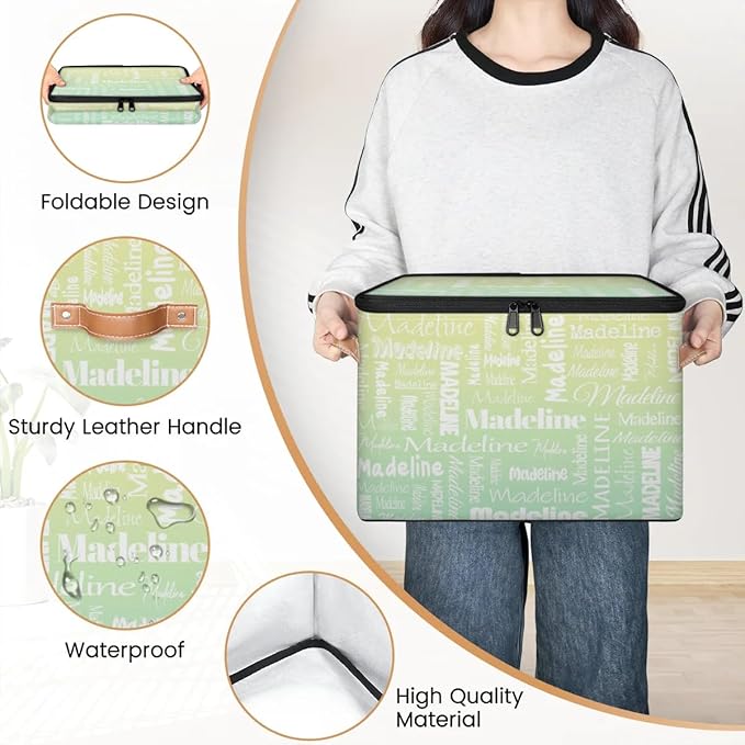 Custom Storage Basket with Name, Personalized Storage Bins with Zipper Lid, Foldable Fabric Storage Box Large capacity with Handle Yellow Green