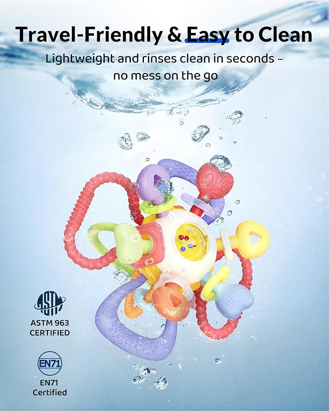 • Safe & Non-Toxic for Your Baby – Crafted from food-grade silicone and BPA-free plastic, this toy ensures your baby is chewing on a safe, non-toxic product. No need to worry about harmful chemicals, making it a must-have for your newborn essentials