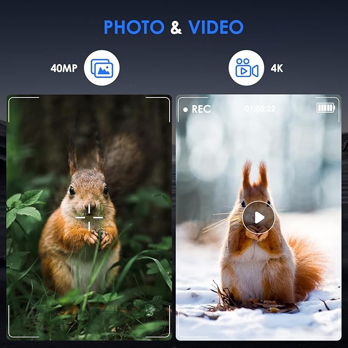 • 【Versatile Capture & Display】This night vision camera supports both photo and video recording, and features a 2.4-inch HD display with three adjustable brightness levels—delivering clear viewing and easy operation in any lighting condition.