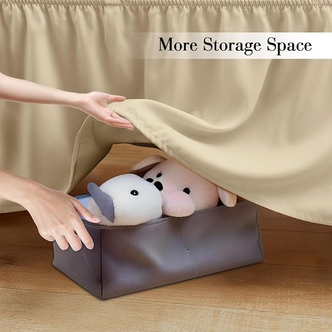 • Elegant Ruffled Design: Enhance your nursery with our khaki crib skirt, featuring flowy ruffles that add a charming touch to any theme, from whimsical to farmhouse aesthetics. 14" drop design helps to conceal easily storage space under the toddler bed.