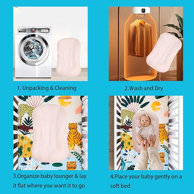 • Easily Washable Cover: LOEVIN'S baby lounger is designed for newborns up to 12-month-olds, offering a safe and cozy space for your little one’s early-stage use and comes with a detachable cover that's easy to remove and machine wash--keeping it fresh and hygienic with minimal effort