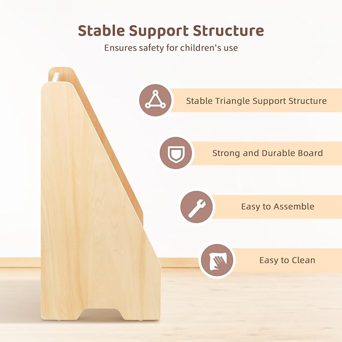 • Easy to Clean: The smooth surface of the nursery montessori bookshelf is coated with water-based paint, making it easy to clean while maintaining the natural characteristics and texture of the wood