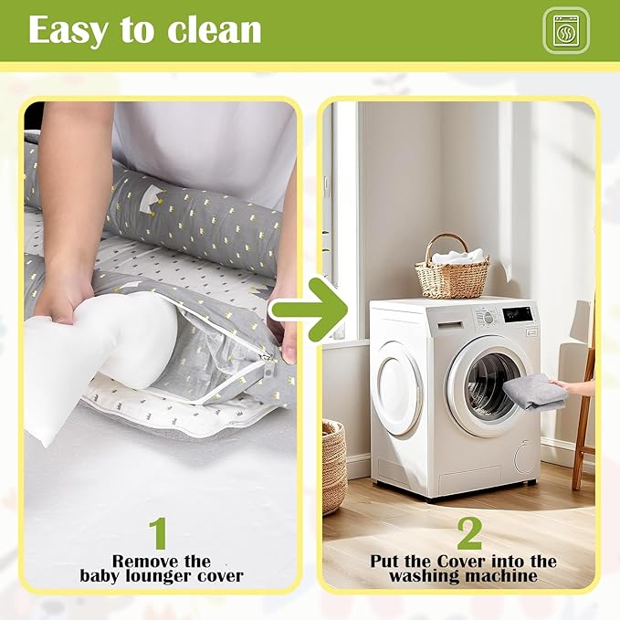 • ZIPPER DESIGN:Baby lounger nest zipper design,remove the jacket for easy cleaning.Keep it clean at all times and grow up healthy and happy along with your baby!