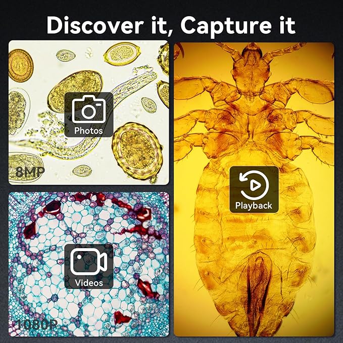 • Capture 8MP Photos & 1080P Videos: Merging high-resolution imaging with microscopy, the built-in camera captures every vivid detail—far beyond what regular electronic microscope can show, making learning both exciting and memorable
