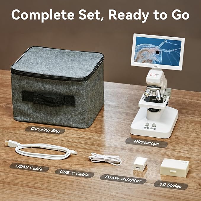 TOMLOV DM301 Pro Microscope for Kids Adults Students, Digital Microscope with 7" Screen, USB & HDMI Output, Wireless Biological Educational Science Scope Camera with Slides Kits for Classroom Home Lab