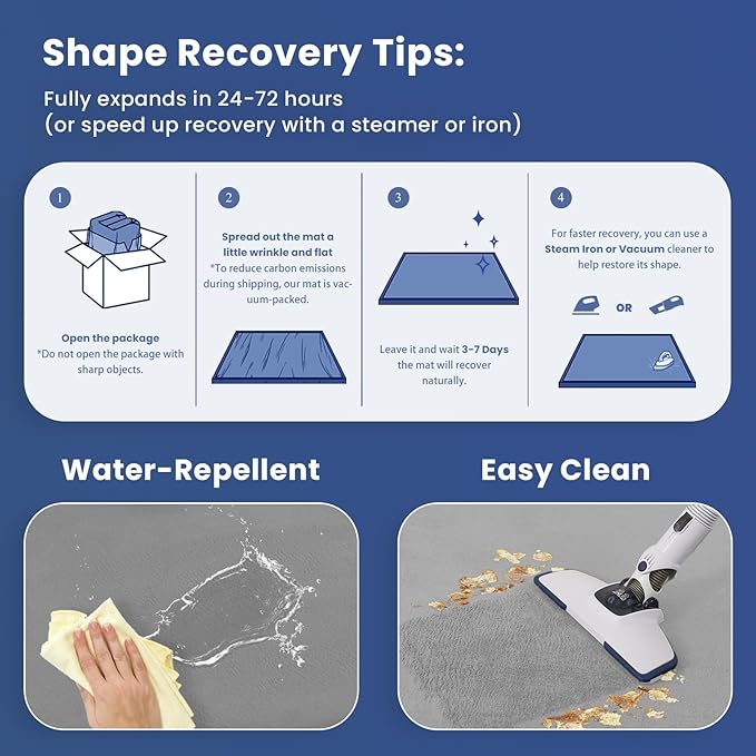• 【TIPS】: Upon arrival, the baby play mat may need 3-7 days to fully rebound to its original size. If it appears slightly compressed, simply allow time or use a gentle iron to help restore its thickness and shape.