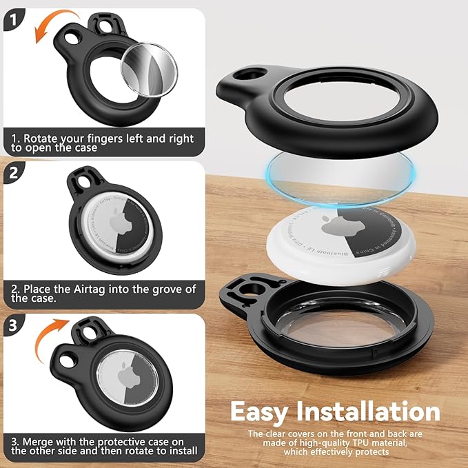 • Easy Installation: No complicated operation is required, and you can fix AirTags in the Holder in a few easy steps;[Tips]: The specific installation steps can be seen in the picture; The protective cover of the Apple Airtags keychain will not affect the touch screen and shield the signal; Whether it is finding lost items or remote tracking, it can be easily achieved