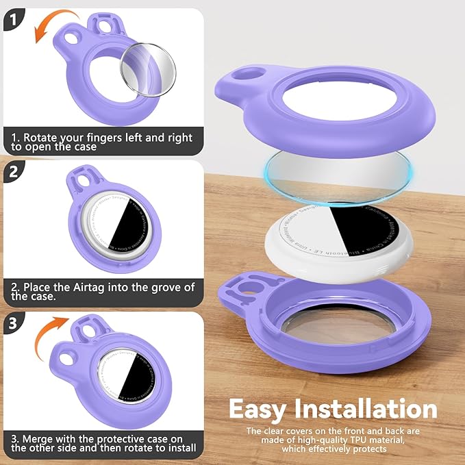 • Easy Installation: No complicated operation is required, and you can fix AirTags in the Holder in a few easy steps;[Tips]: The specific installation steps can be seen in the picture; The protective cover of the Apple Airtags keychain will not affect the touch screen and shield the signal; Whether it is finding lost items or remote tracking, it can be easily achieved