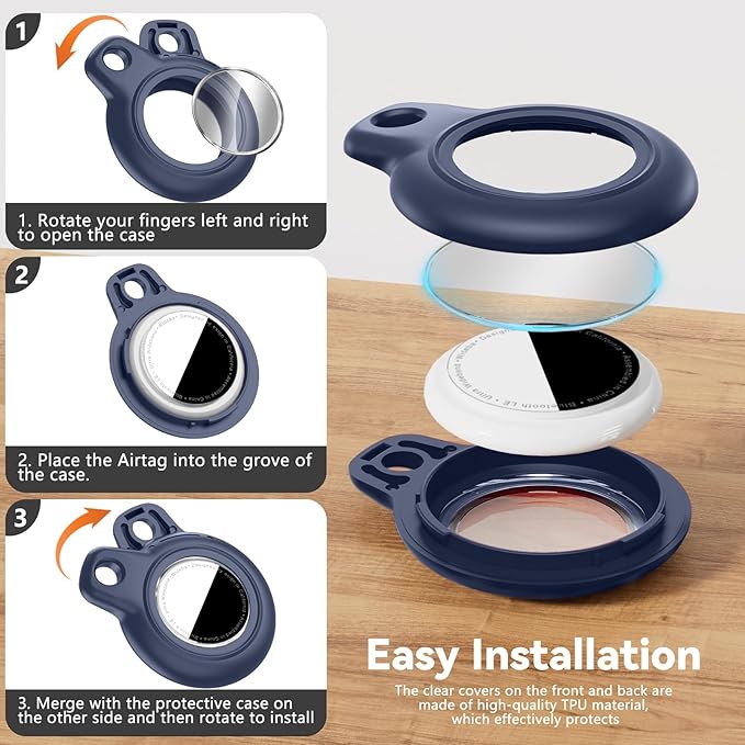 • Easy Installation: No complicated operation is required, and you can fix AirTags in the Holder in a few easy steps;[Tips]: The specific installation steps can be seen in the picture; The protective cover of the Apple Airtags keychain will not affect the touch screen and shield the signal; Whether it is finding lost items or remote tracking, it can be easily achieved