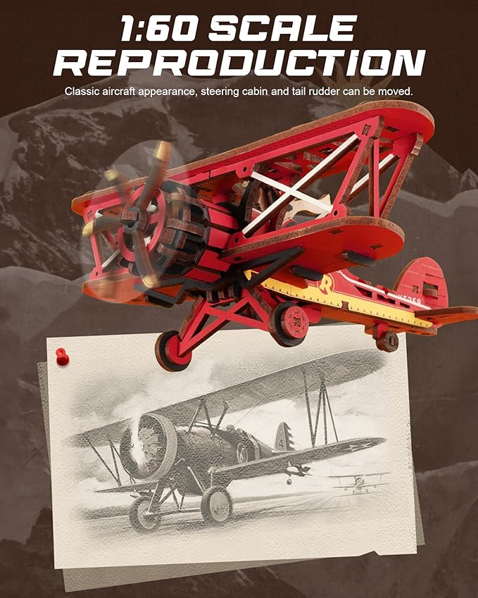 • [Gravity Swing]This wooden puzzle combines assembly, entertainment, and decor into one stunning piece. Once completed, it beautifully replicates a classic biplane gladiator from the last century, making it a perfect display for aviation enthusiasts and history lovers alike.