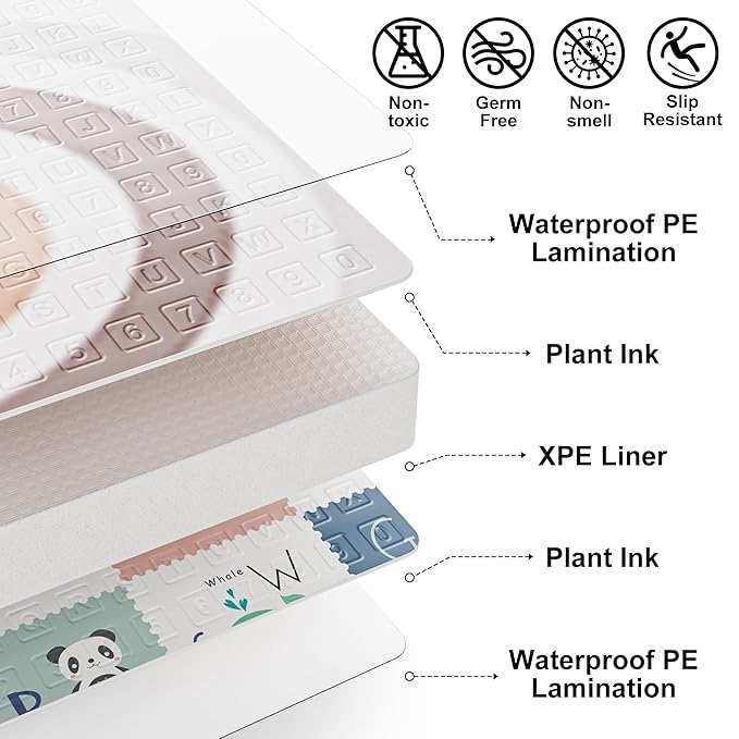 • Safe and Comfortable: Made of high-density, scratch resistant XPE foam material, BPA free and non-toxic, provides ample space for babies to crawl, walk and play. 0.4 inch thick mat provides cushioning protection, Protect infants from serious falls and floor collisions