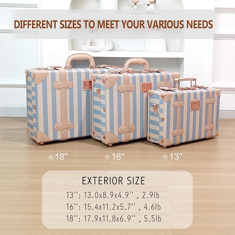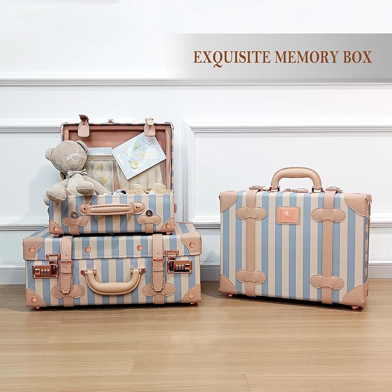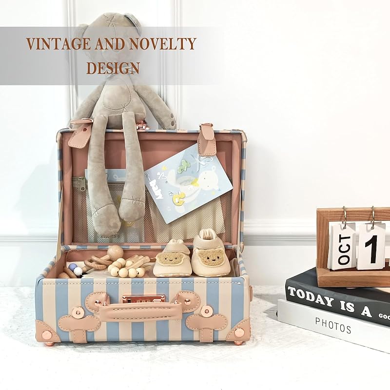 Unitravel Baby Keepsake Case, 13" Handmade Memory Storage Box, Newborn Keepsake Box, Vintage Suitcase for Baby Shower, Baptism, Naming Ceremony or Birthday (blue strip)