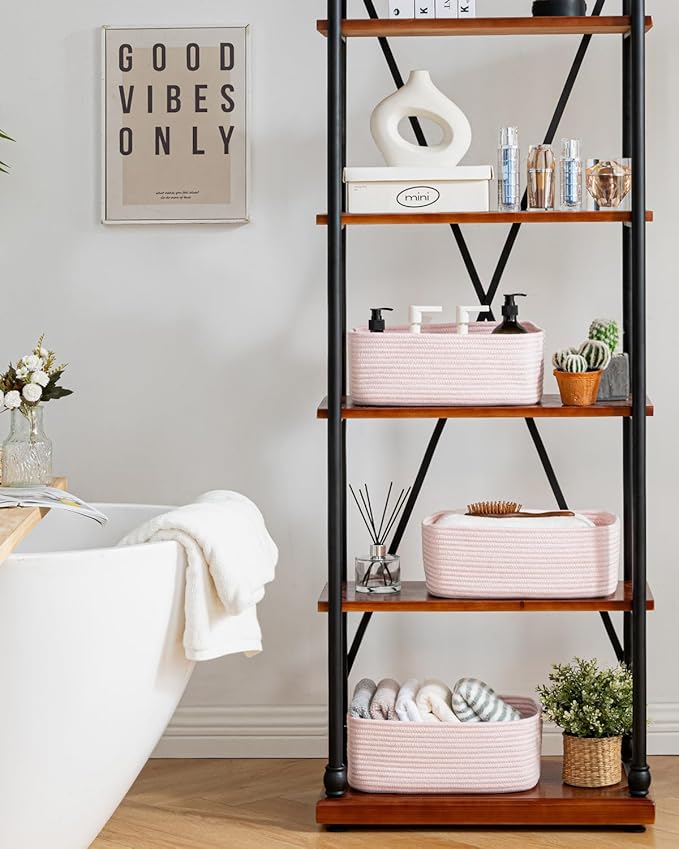 • [ Elegantly Designed to Match Any Décor ] Our small rope basket creates a minimalist appearance, and it adds a touch of warmth and texture to any room. The classic solid color design ensures seamless integration with your existing aesthetics, complementing any decoration. Perfect as decorative storage baskets for shelves, cabinets, and any open display space, making them a stylish and practical addition to any decor, enhancing the overall aesthetics of your room