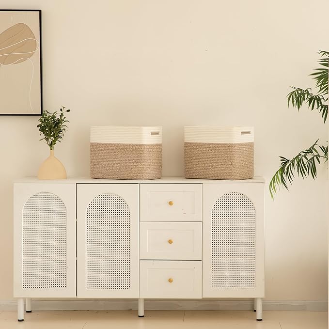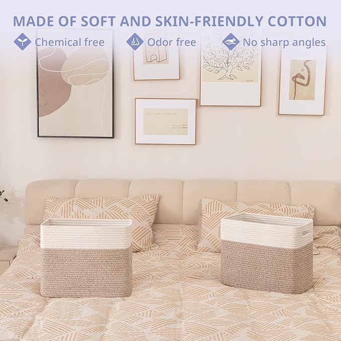 • 100% Cotton Rope Storage Baskets:OIAHOMY storage bins are made of high-quality natural cotton, chemical free and safe for kids and pets. It will not scratch your furniture and floor and more firm than plastic basket