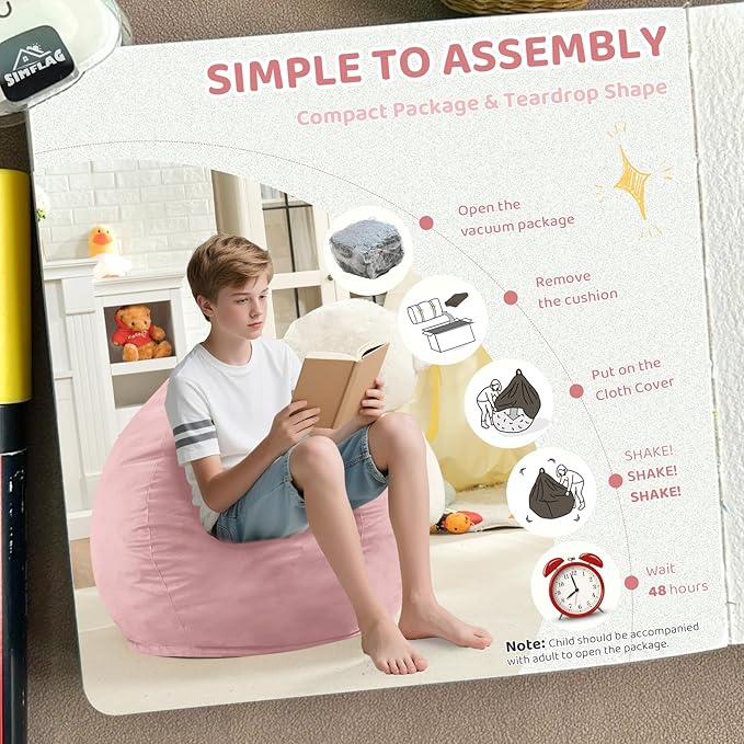 • WIDELY USE FURNITURE: Bean bag chairs is ideal for watching movies, studying, reading, gaming, napping, or just chilling, and is the perfect addition to every space, playroom, kid's room, living room, office, or school dorm.
