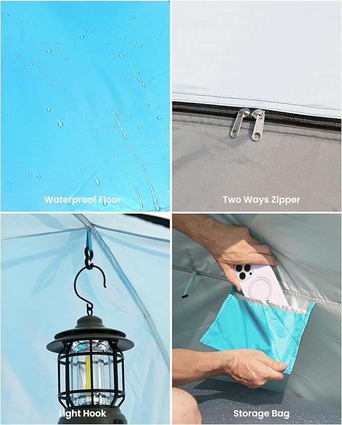• Versatile & Thoughtful Design: Features a convenient zippered door for quick privacy when changing clothes. The extended front floor creates bonus space - perfect for gear storage, kids' play area, or relaxing in the shade