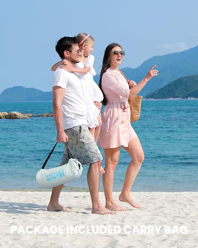 • Portable & Easy To Carry: Weighing just 4.8 lbs, this compact beach tent packs down easily into its included carry bag for effortless portability. Perfect for spontaneous beach trips - simply toss it in your trunk and go! (Tips: For fastest setup, team up with a friend!)