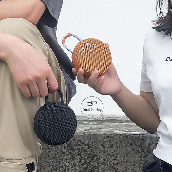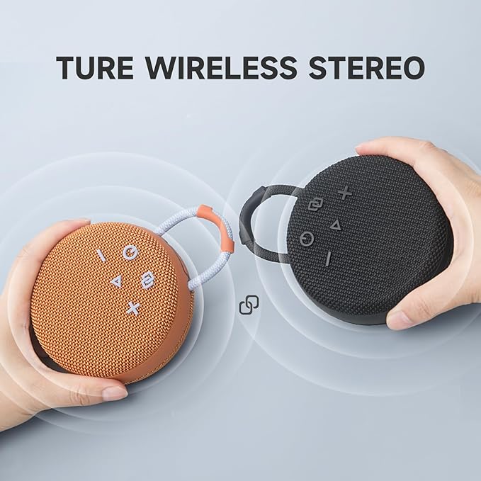 • Tough Enough for the Trail:Wrapped in a rugged rubber shell and built to be IPX7 waterproof, this mini Bluetooth speaker handles splashes, dirt, and drops like a champ; toss it in your daypack or clip it to your bike and hit the road with your soundtrack on lock