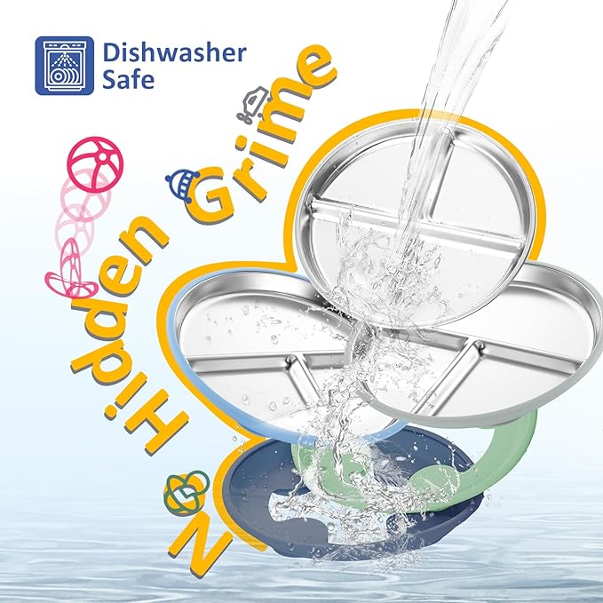 • Hassle-Free Cleaning: Resistant to food stains like carrots, the smooth stainless steel surface is easy to clean. Both the toddler plate and silicone suction sleeve are dishwasher-safe, making cleanup quick and stress-free for busy parents
