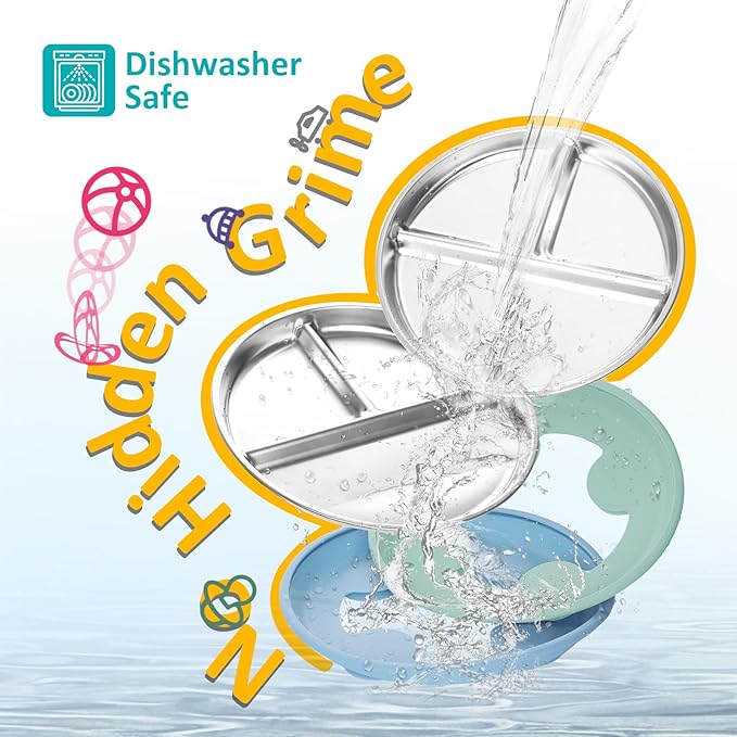 • Hassle-Free Cleaning: Resistant to food stains like carrots, the smooth stainless steel surface is easy to clean. Both the toddler plate and silicone suction sleeve are dishwasher-safe, making cleanup quick and stress-free for busy parents