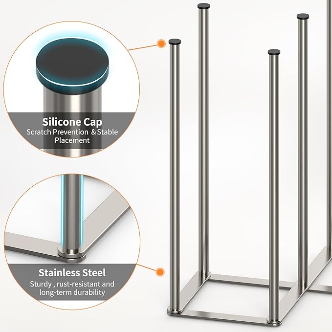 • 【Scratch-Resistant Protection】 Featuring seven silicone caps on top of the stainless steel poles, this drying rack securely holds bottles, cups, jars, and other kitchen items while preventing scratches.